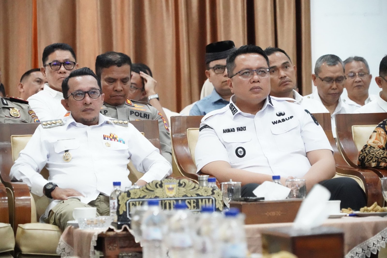 TANAH DATAR – Bupati Eka Putra dan Wakil Bupati (Wabup) Ahmad Fadly beserta Forkopimda Tanah Datar menyaksikan secara daring, Presiden Prabowo Subianto menlaunching logo peringatan Hari Ulang Tahun (HUT) Kemerdekaan RI ke 80 langsung dari Istana Kepresidenan, Jakarta Pusat, Rabu (23/7/2025).