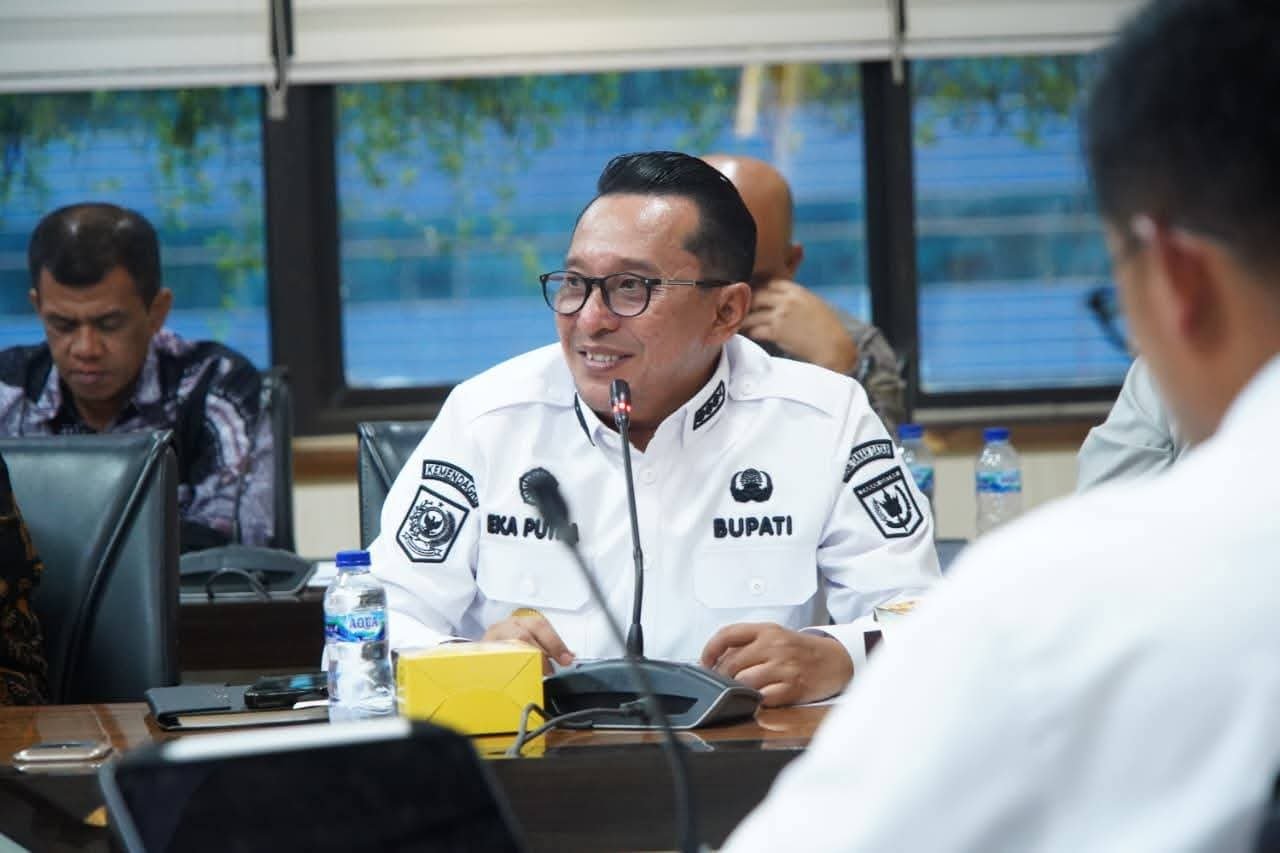 Dalam rapat tersebut, Bupati Eka Putra turut didampingi Asisten Ekonomi dan Pembangunan Ten Ferry serta Kepala Dinas PUPR Pertanahan Mustika Suarman. (Nas)