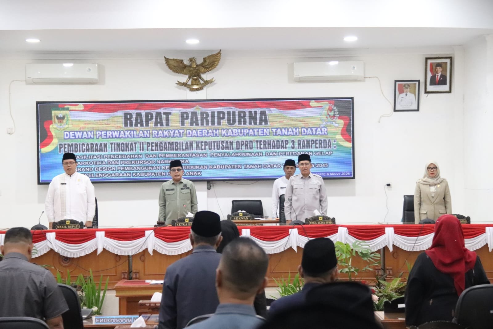 Rapat paripurna yang dipimpin Ketua DPRD Anton Yondra, didampingi Wakil Ketua DPRD Nurhamdi Zahari dan Kamrita, dihadiri Wakil Bupati Tanah Datar Ahmad Fadly, forkopimda, sekda, staf ahli bupati, asisten, pimpinan OPD, kabag, camat, dan wali nagari se Tanah Datar.