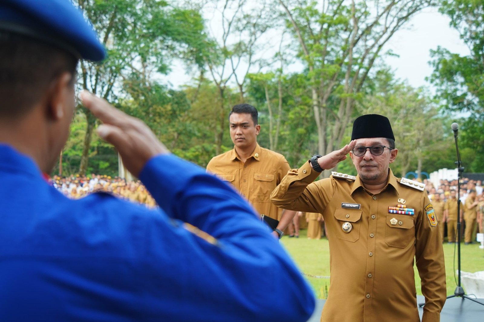 Diakhir penyampaiannya, Bupati Eka Putra juga menyampaikan selamat menunaikan ibadah puasa dan selamat menyambut hari raya idul fitri 1446 H/2025 M kepada seluruh peserta apel.