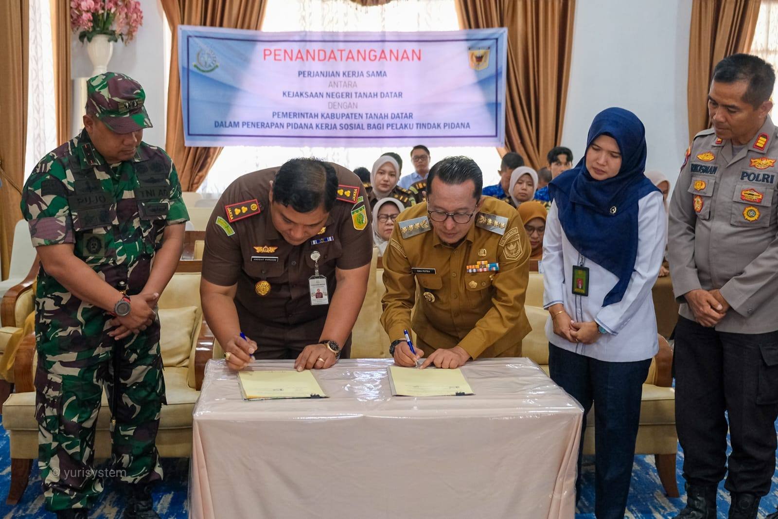 Kegiatan ini turut disaksikan Dandim 0307 Tanah Datar, Kepala Pengadilan Negeri Batusangkar, Sekretaris Daerah Tanah Datar, Asisten Administrasi Umum, serta undangan lainnya.