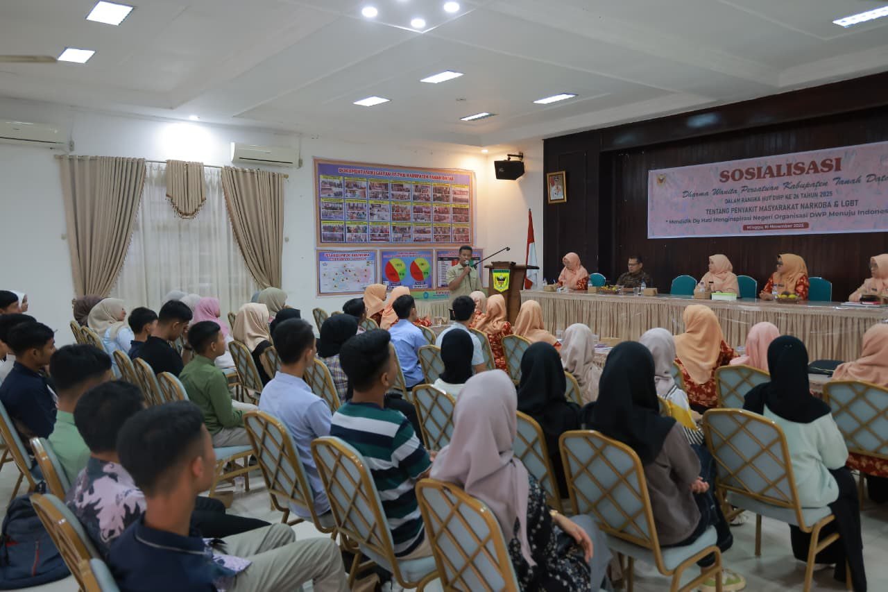 TANAH DATAR – Pemerintah Kabupaten Tanah Datar bersama Dharma Wanita Persatuan (DWP) Tanah Datar menggelar Sosialisasi Bahaya Penyakit Masyarakat, khususnya Narkoba dan LGBT, pada Minggu (16/11/2025). Kegiatan berlangsung di Aula DWP Tanah Datar dan diikuti anggota DWP serta pelajar dari berbagai sekolah.