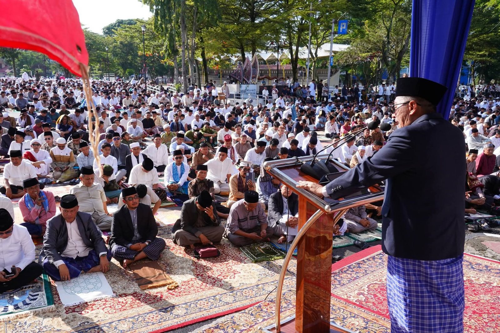 Sementara untuk pelaksanaan shalat hari raya Idul Fitri pada hari Sabtu (31/4/2026) besok, bertindak sebagai Khatib adalah Kepala Kemenag Tanah Datar dan Imam adalah Ustadz Dodi Hendra, S.Pd.I, M.A. (Nas)