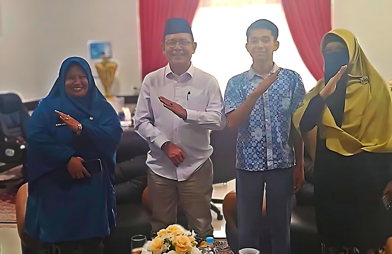 Wali Kota Payakumbuh berfoto bersama Syahdan Hesa, siswa SMA 1 Payakumbuh yang akan mewakili Indonesia di ajang Water Rocket Competition 2025 Kuala Lumpur, didampingi guru dan keluarga. (Sumber Foto : Humas Pemko Payakumbuh/Clicksuara.com)