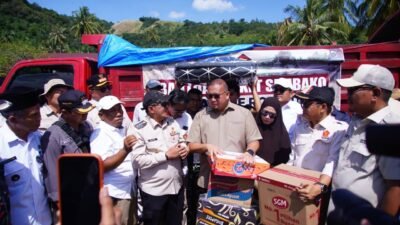 TANAH DATAR – Anggota DPR RI Andre Rosiade menyerahkan paket sembako dan bantuan logistik kepada…